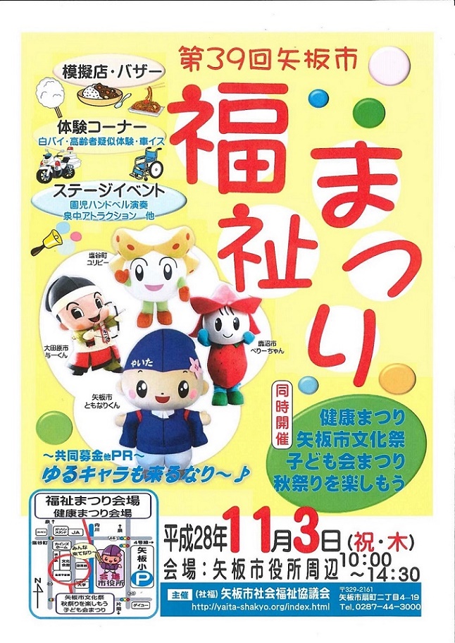 | 2016年11月3日(木) 第39回矢板市福祉まつり | ||