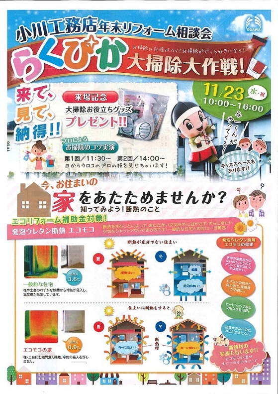 | 2016年11月23日(水) 小川工務店「らくぴか大掃除リフォーム相談会inタカラ」 | ||