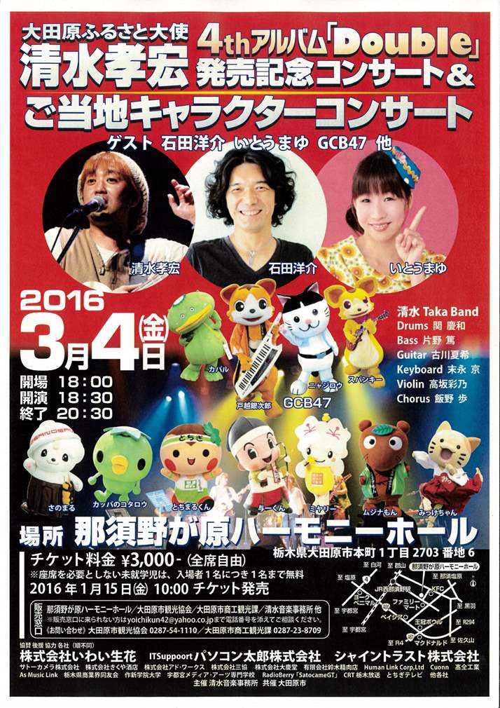 | 2016年3月4日(金) 清水孝宏コンサート&ご当地キャラクターコンサート | ||
