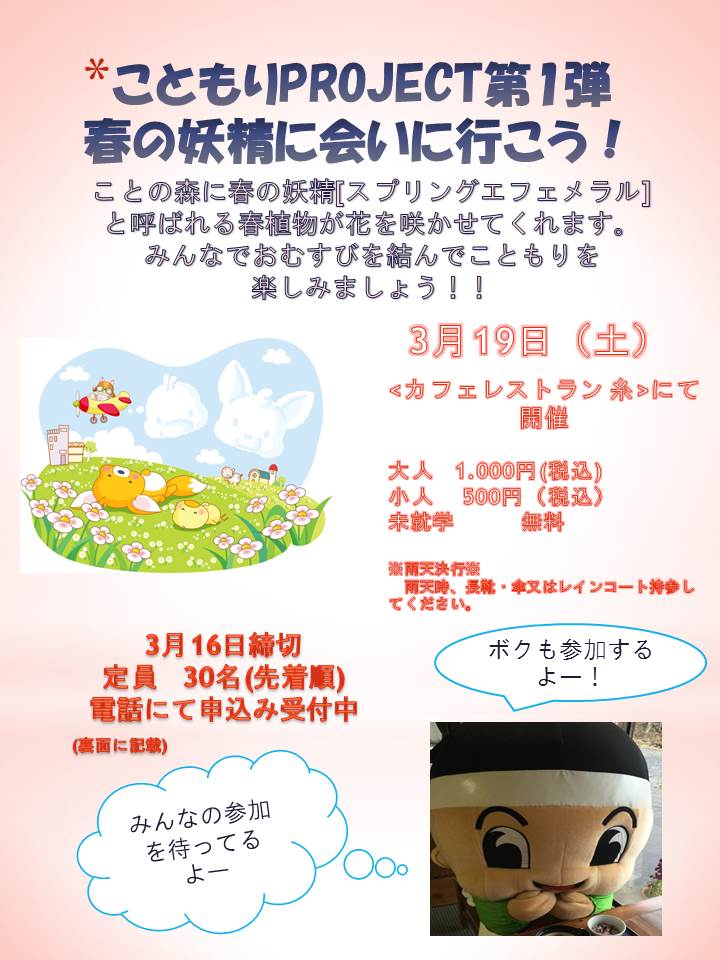 | 2016年3月19日(土) こともりプロジェクト第一弾「春の妖精に会いに行こう!」 | ||