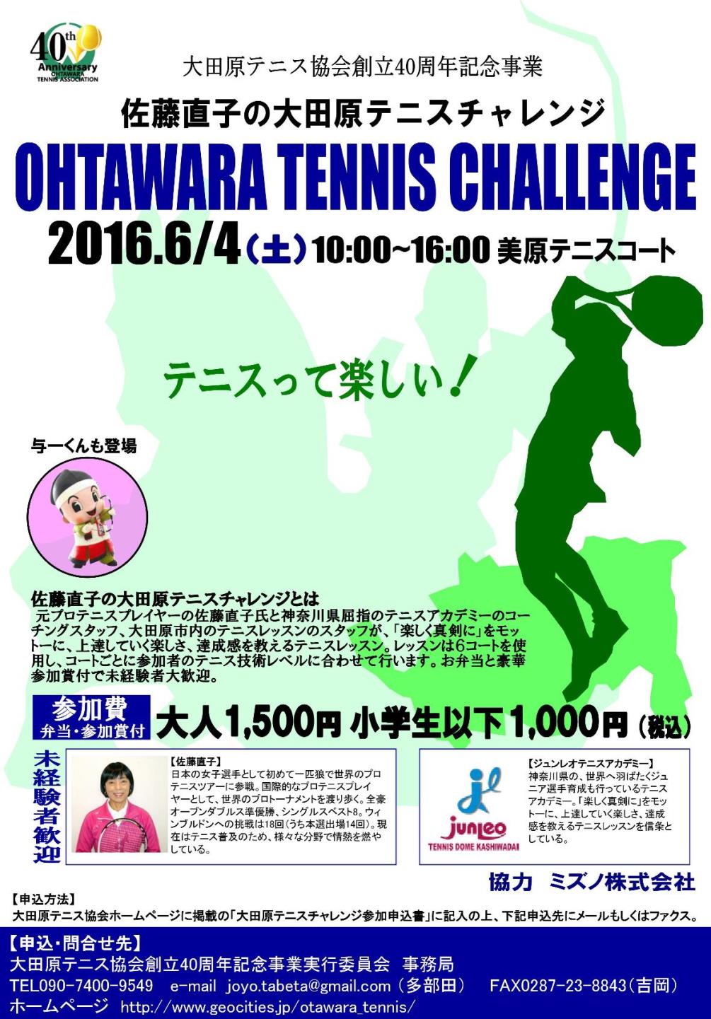 | 2016年6月4日(土) 佐藤直子の大田原テニスチャレンジ | ||