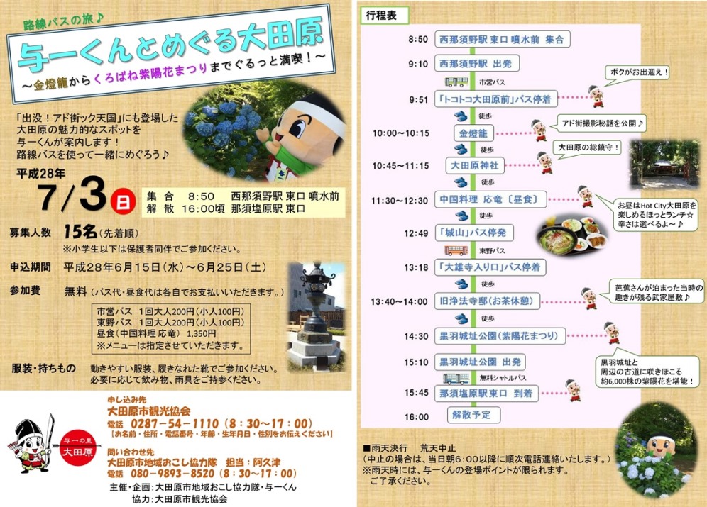 | 2016年7月3日(日) 与一くんとめぐる大田原 | ||