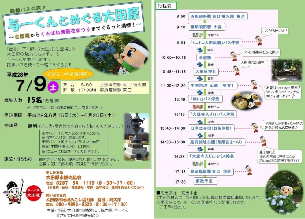| 2016年7月9日(土) 与一くんとめぐる大田原 | ||