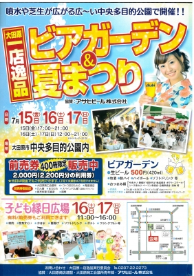 | 2016年7月16日(土) 大田原一店逸品 ビアガーデン&夏まつり | ||