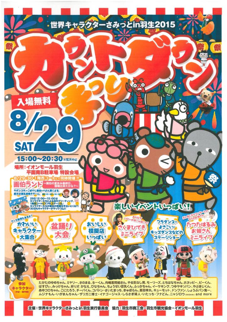 | 2015年8月29日(土) 世界キャラクターさみっとin羽生〜カウントダウンまつり〜 | ||
