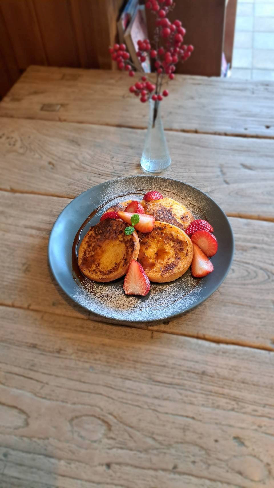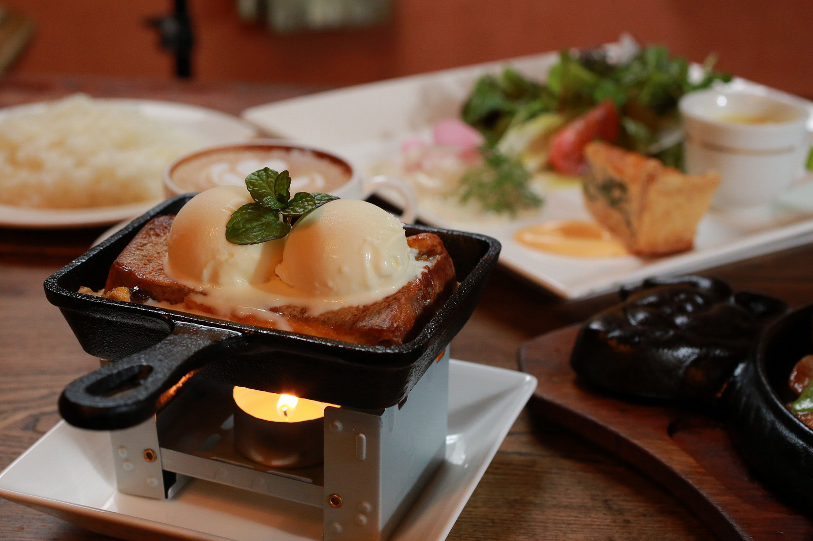 栄養価が高い古代米のパンを、栃木県産の卵・牛乳・クリームのブリュレ液に浸したリッチな味わい。